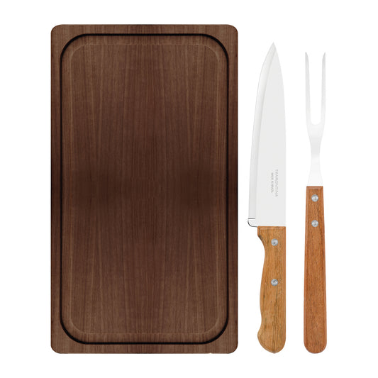 Tramontina 3-Piece Barbecue Kit with Stainless-Steel Blades and Natural Wood Handles